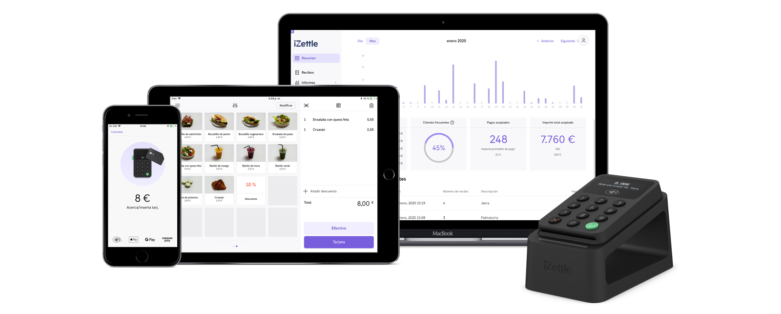 Con el lector de tarjetas de crédito de iZettle cualquiera puede procesar pagos con tarjeta en cualquier momento y lugar, mientras que nuestro intuitivo sistema de terminal punto de venta simplifica el procesamiento de los pagos, el control de las ventas y la gestión de los productos.