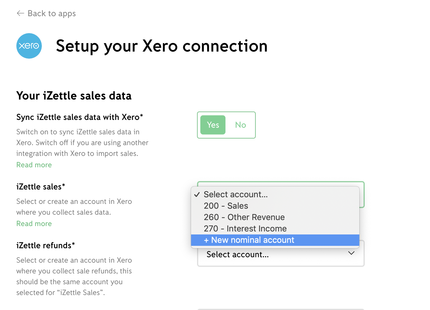 - In order for the import to work seamlessly, you need to specify which iZettle data goes into which Xero account. Each transaction type can have a dedicated account in Xero.