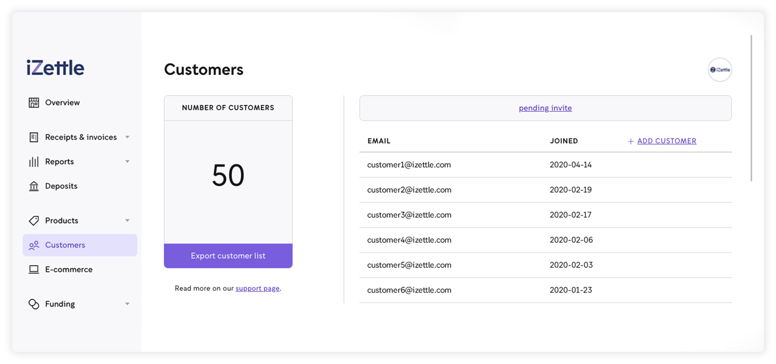 - Go to my.izettle.com/customers