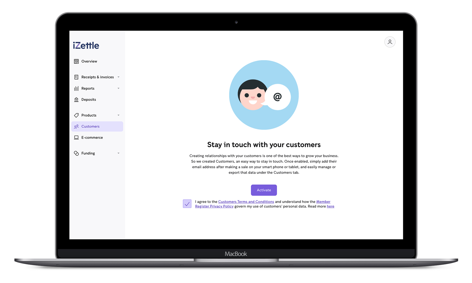 When signing up for the Member Register Service, you choose to use the Member Register Privacy Policy that we produce for you and populate with your contact details. This privacy policy explains how you will process your customers’ personal data and their rights. It will be included in the email sent to your customers after you add them to your customer list. It is important that you read and understand the content of the privacy policy, as both your customers and iZettle expect you to act in accordance with it.